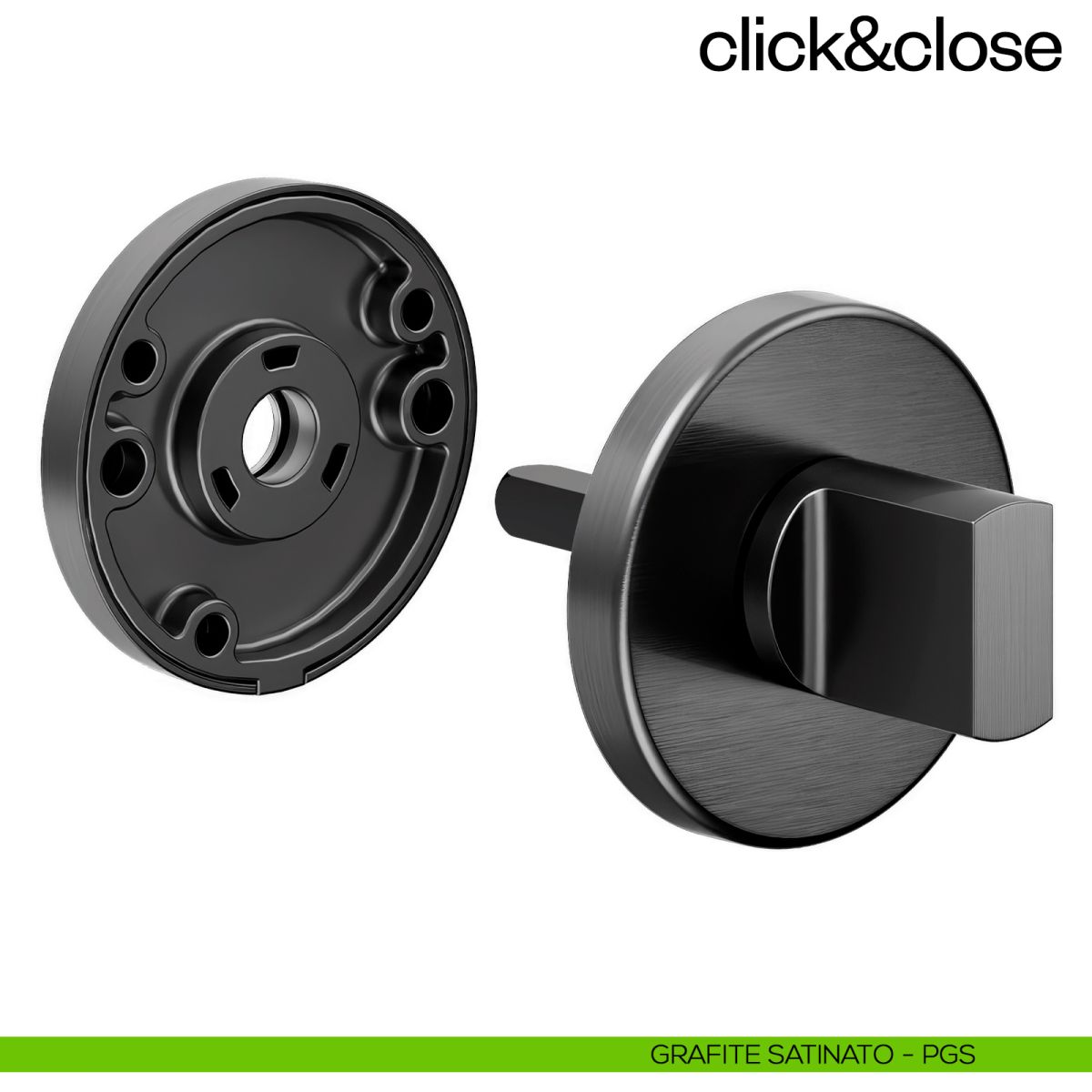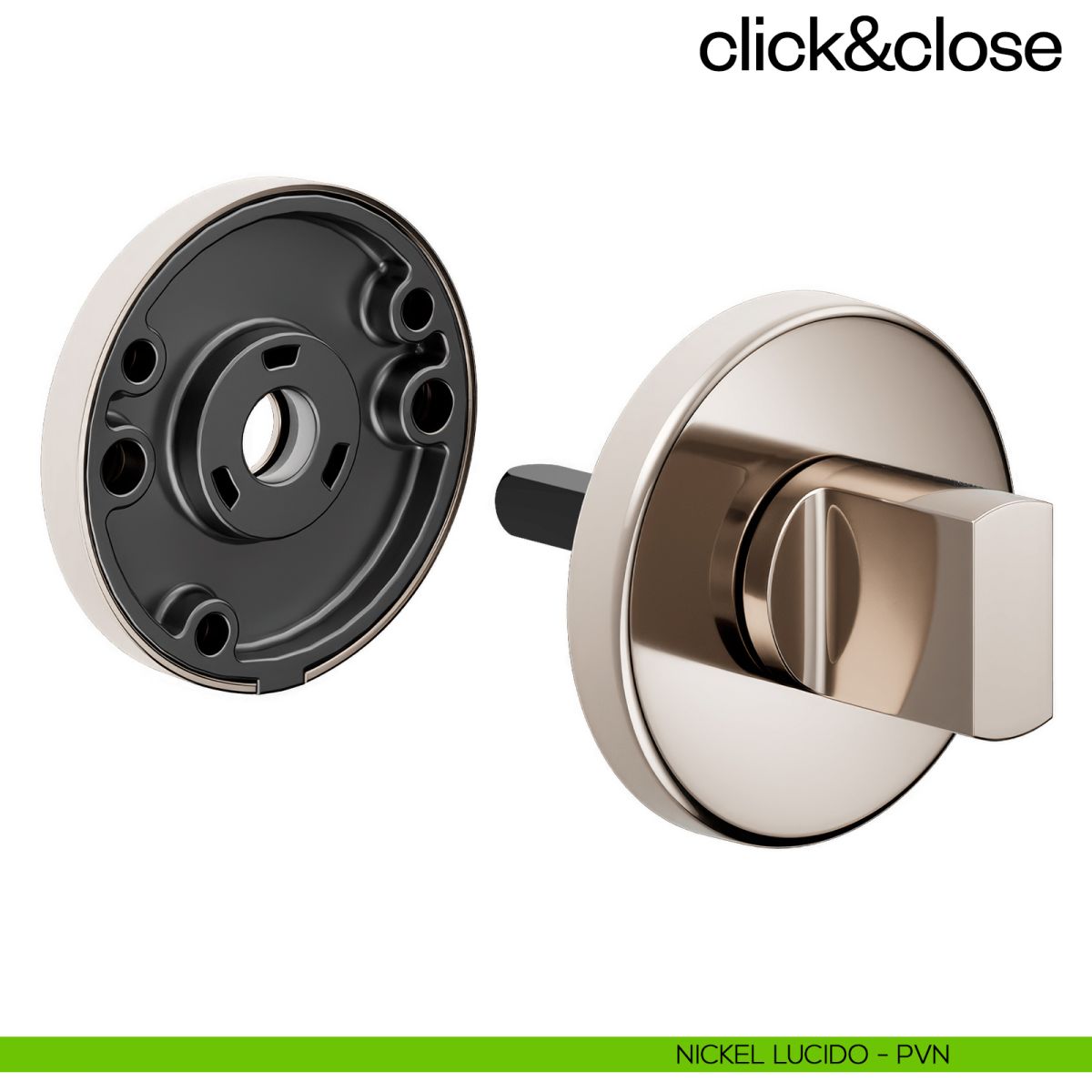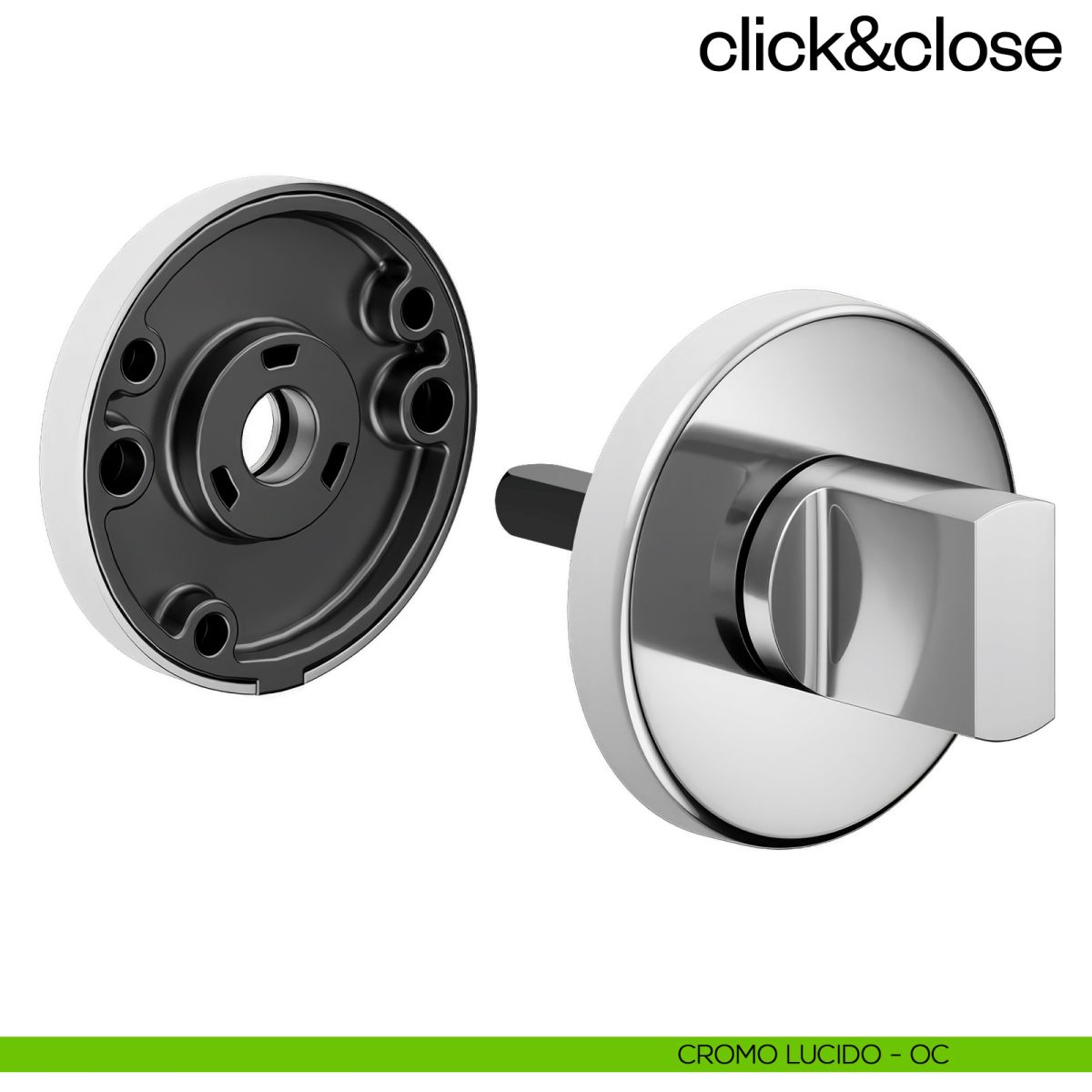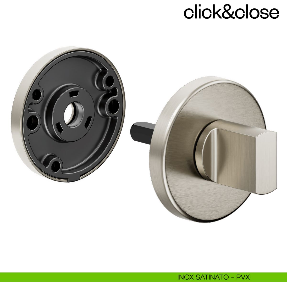 Set bocchette per sistema magnetico Click & Close Dnd con chiave magnetica e bocchetta tonda, abbinabile a tutti i modelli di maniglie Dnd con rosetta VIS, compatibile con tutte le serrature versione nottolino WC con quadro 6x6 mm.