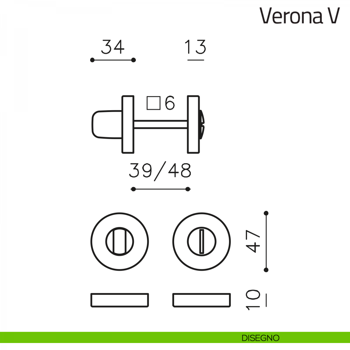 Nottolino per porta Verona Q Olivari con rosetta quadrata bassa.