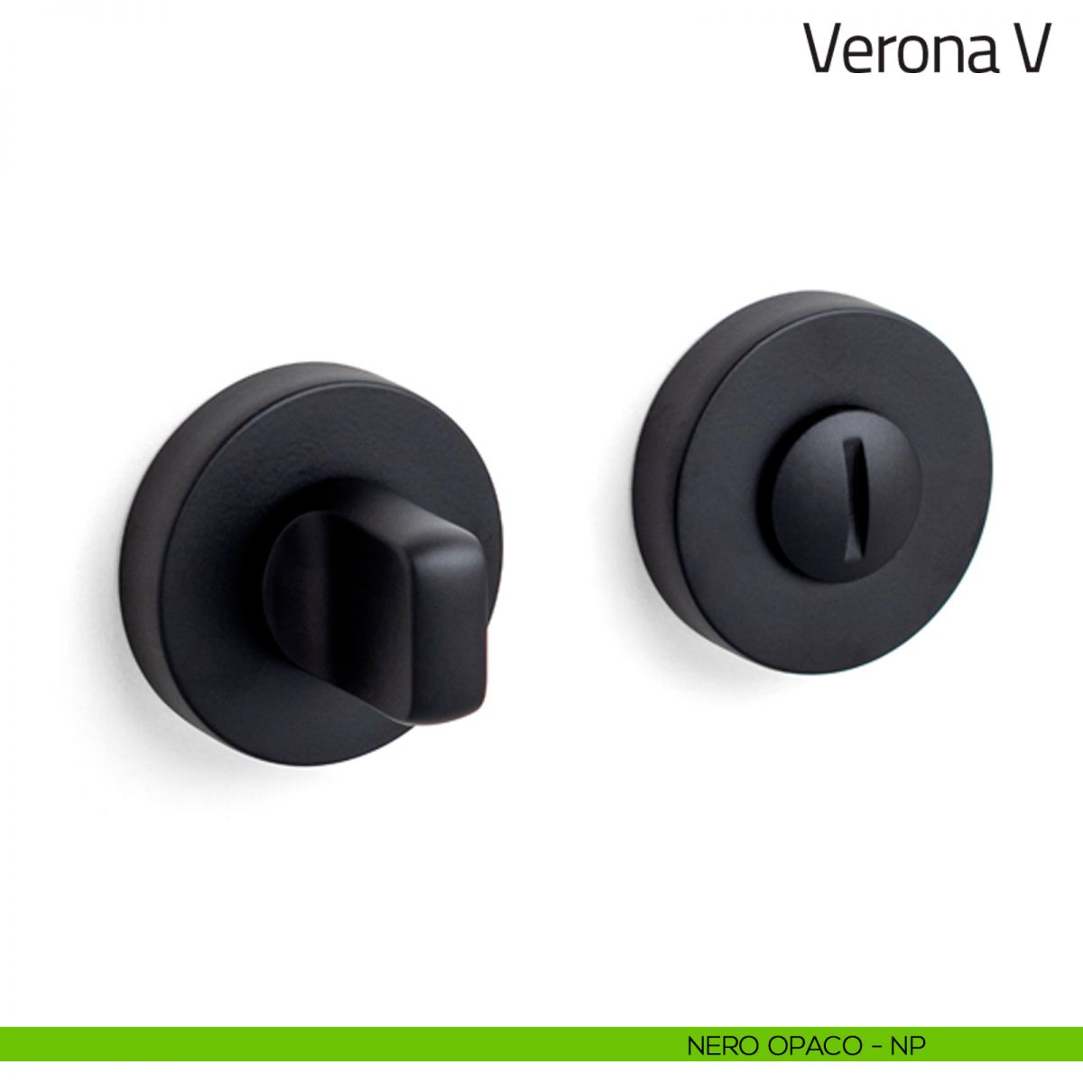Nottolino per porta Verona V Olivari con rosetta tonda e segnalatore libero/occupato.