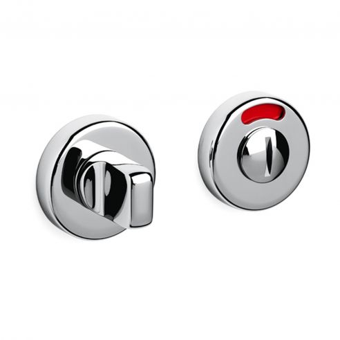 Nottolino per porta Verona R Olivari con rosetta tonda e segnalatore libero/occupato. Design by Studio Olivari.