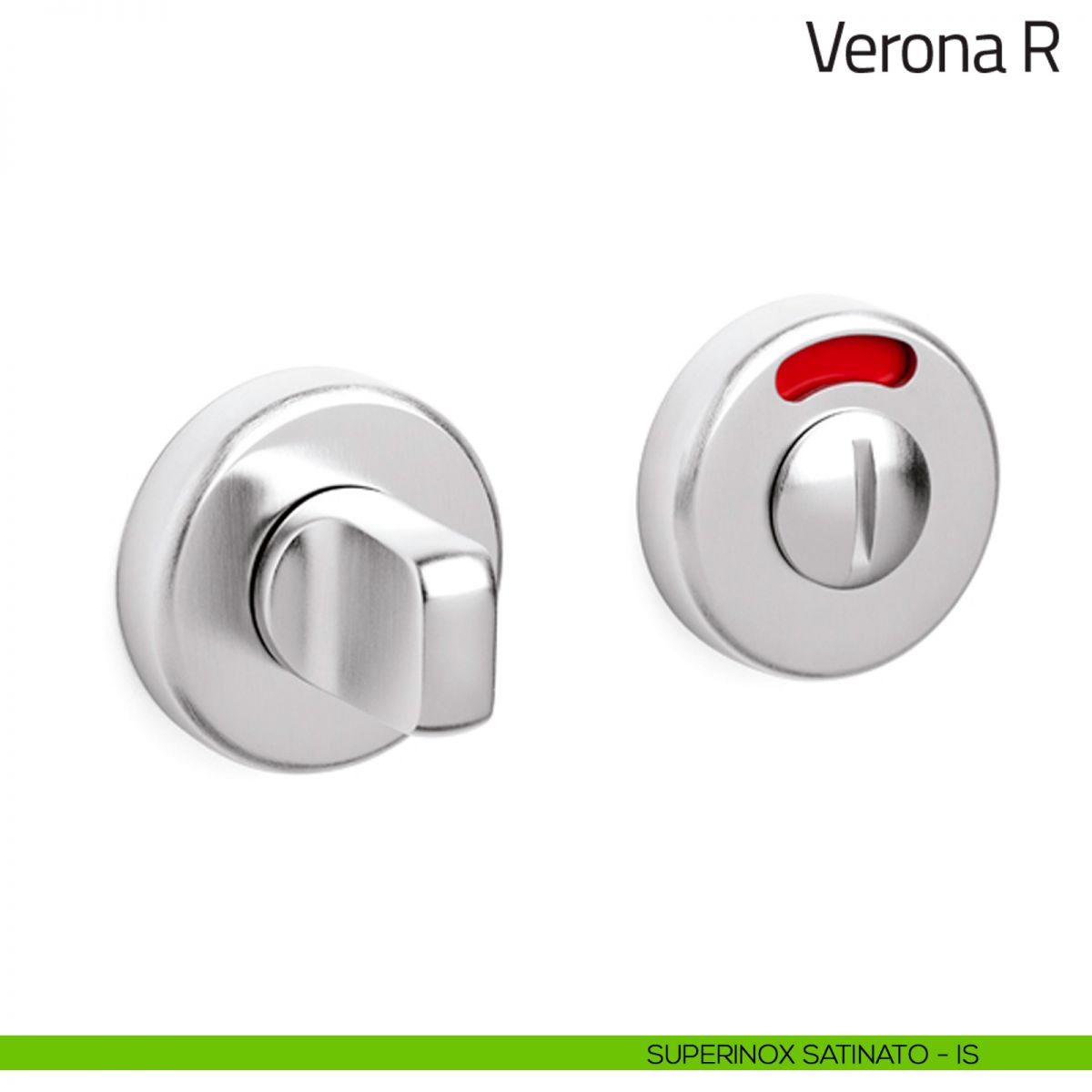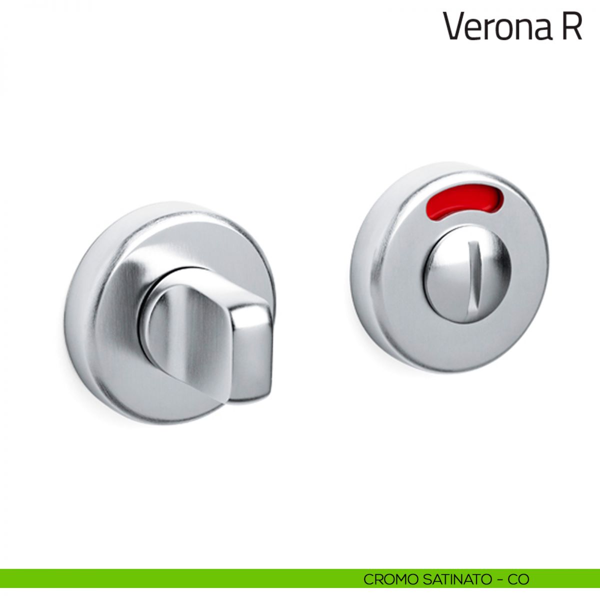 Nottolino per porta Verona V Olivari con rosetta tonda e segnalatore libero/occupato.