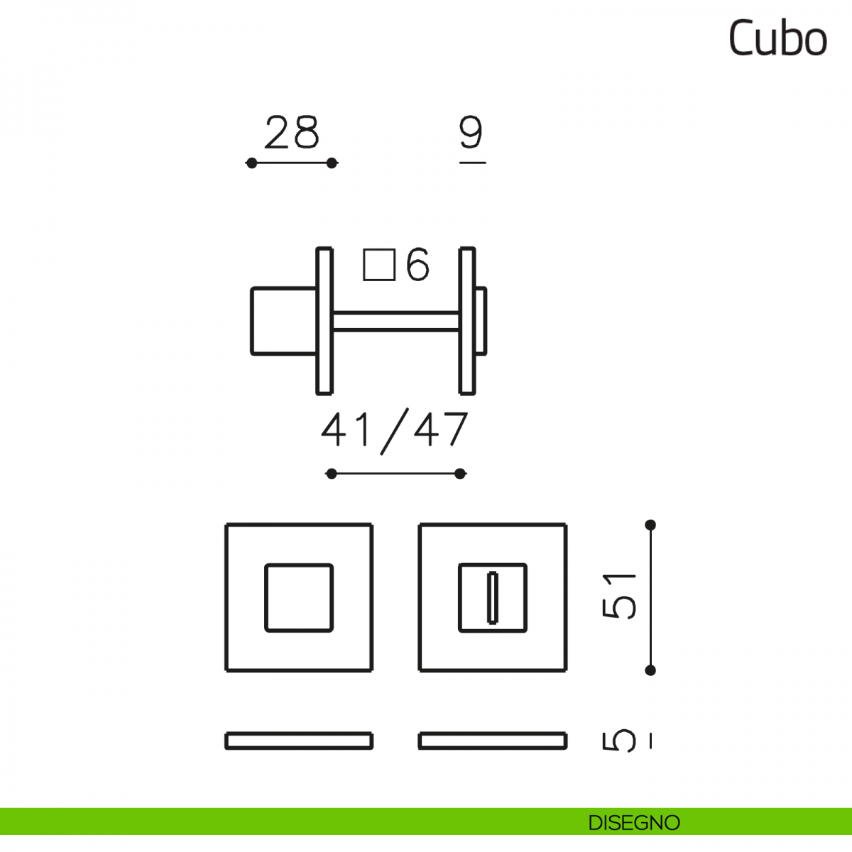 Nottolino per porta Cubo Olivari con rosetta quadrata.