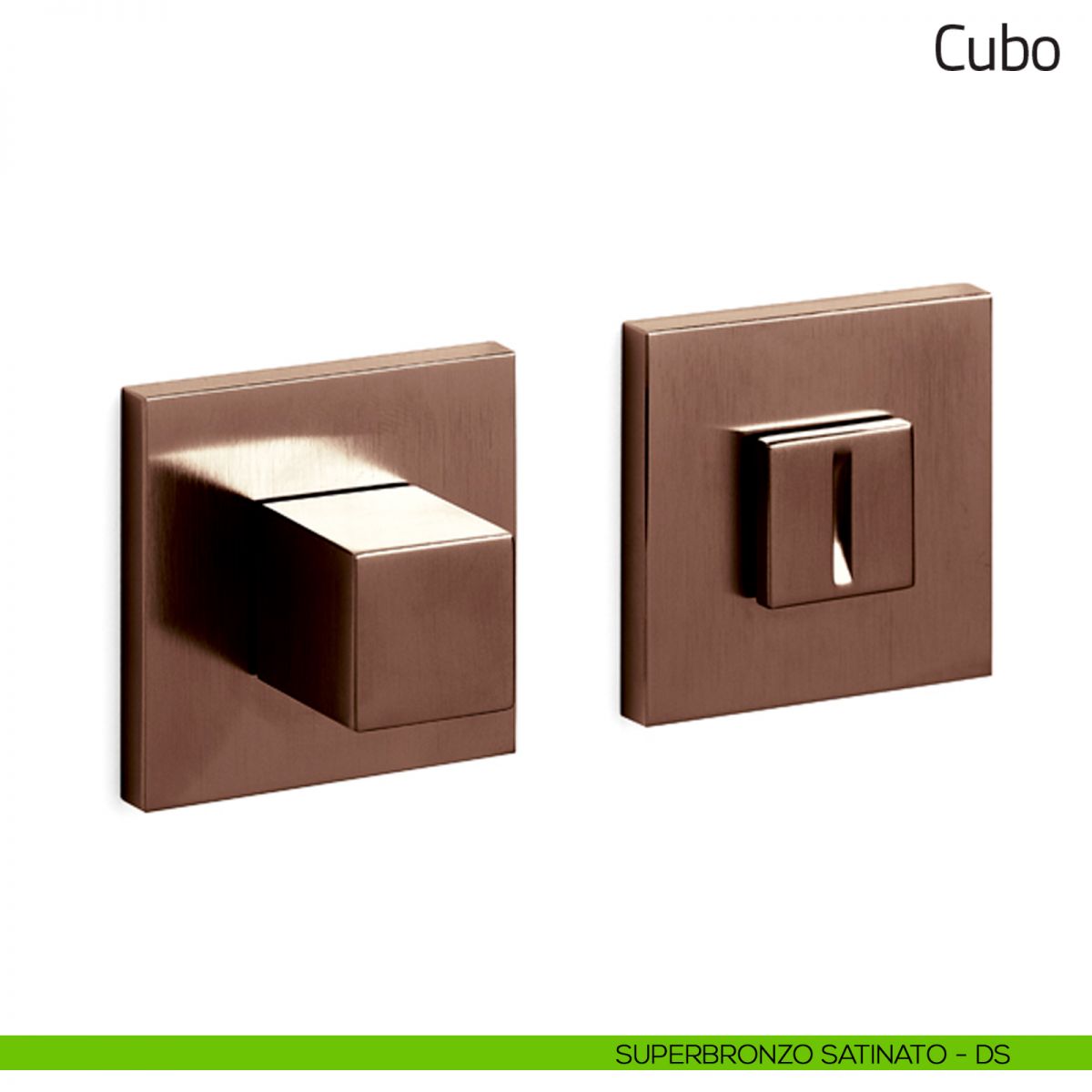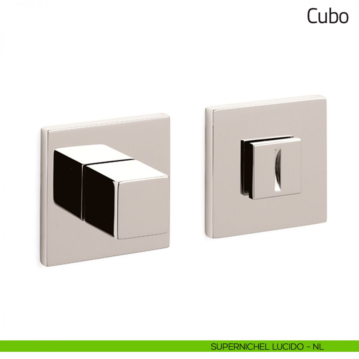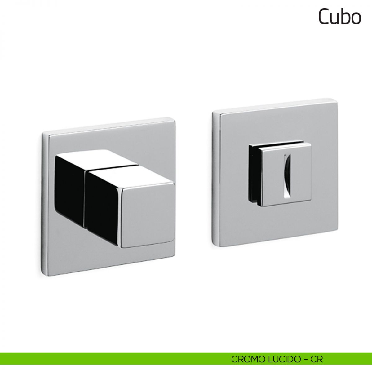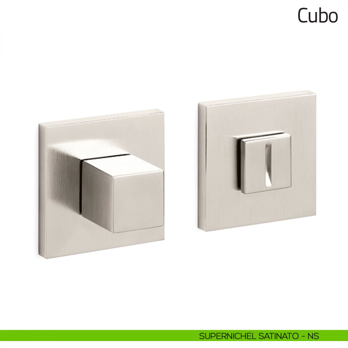 Nottolino per porta Cubo Olivari con rosetta quadrata e segnalatore libero/occupato.
