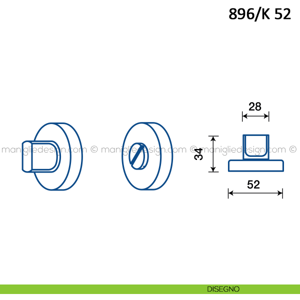 Nottolino per porta Frascio con rosetta ø50 mm articolo 896/K 52.