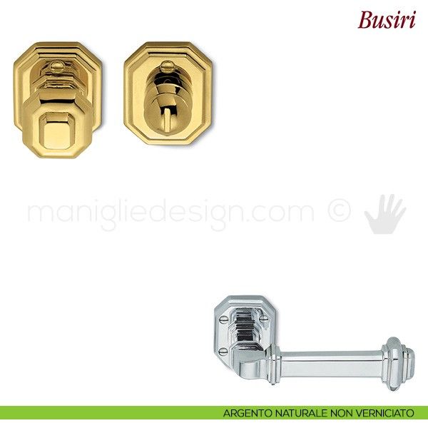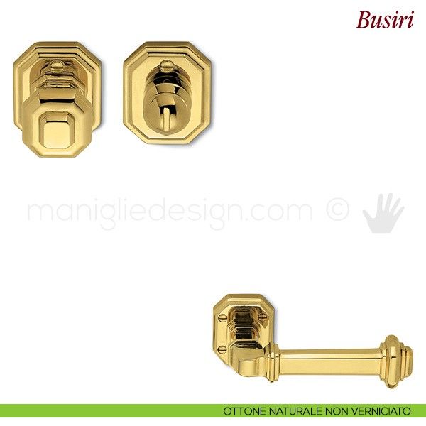 Maniglia per porta interna Busiri Antologhia con rosetta e bocchetta bassa con molla di ritorno.