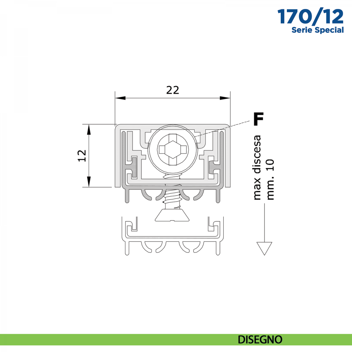 Il catalogo prodotti Comaglio si completa con la Serie 170 12 serie Special, con sistema a singola regolazione che si distingue per il controllo del movimento del profilo mobile insieme alla presenza di guarnizione (abbassamento istantaneo dal lato delle cerniere della porta e successiva discesa graduale lungo l'intera lunghezza), permettendo un adattamento al livello del pavimento. La linea Special Comaglio è concepita per soddisfare le richieste di applicazioni specifiche, come ad esempio nell'ambito degli infissi in alluminio, dove le dimensioni dei dispositivi antispiffero assumono un ruolo di primaria rilevanza. All'interno di questa gamma, è possibile trovare articoli adatti a tutti i tipi di profili per porte. La Serie 170 12 di Comaglio è adatta a porte in PVC, blindate, legno e alluminio e acciaio. E' l'unico che garantisce un isolamento acustico fino a 47 DB, la resistenza al fuoco fino a 60 minuti e 200.000 cicli di funzionamento.