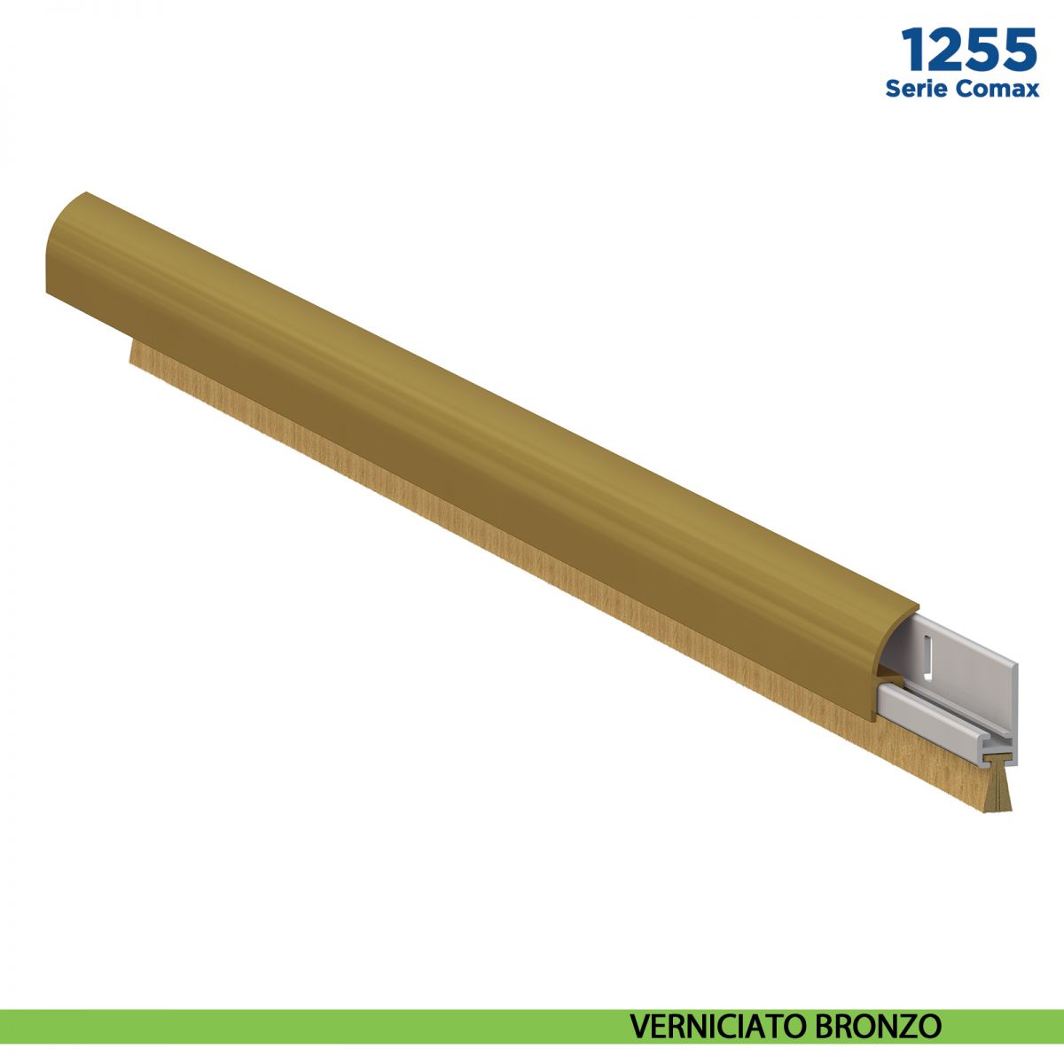 Il catalogo prodotti Comaglio si completa con la Serie Comax, paraspifferi specifici e indirizzati per un uso fai da te, adatti sia per porte in PVC, blindati, legno, alluminio e acciaio. Il modello di paraspifferi 1250 Serie Comax ha un profilo fisso in alluminio con guarnizione e una copertura disponibile in diverse finiture, tra cui colori RAL e alluminio argento e bronzato.