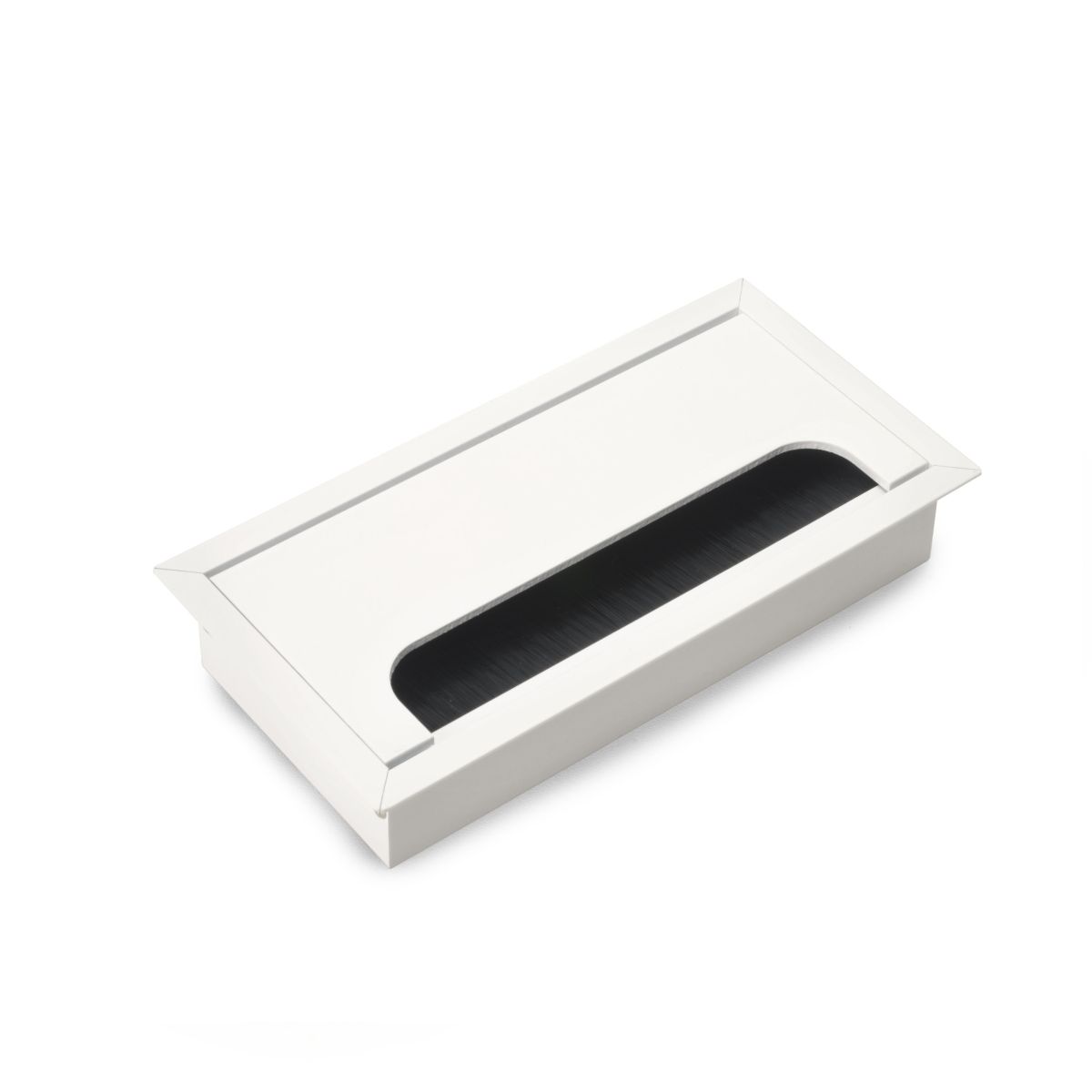• Passacavi rettangolare da inserire nella superficie di scrivanie, tavoli o mobili di casa per nascondere i cavi dei dispositivi elettronici.