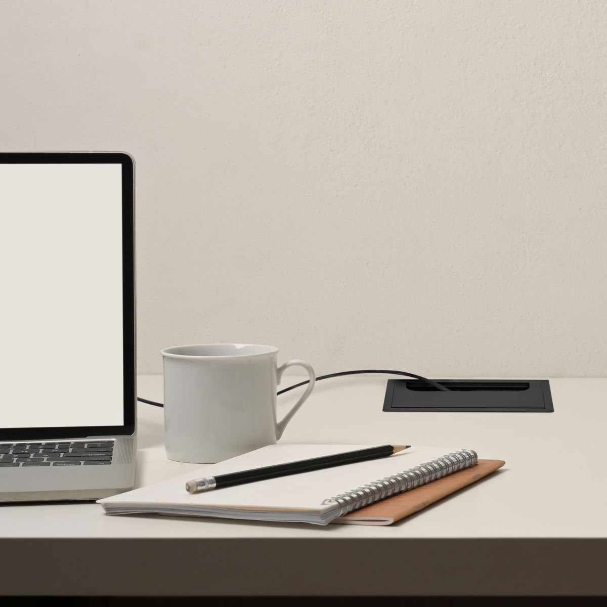 • Passacavi rettangolare da inserire nella superficie di scrivanie, tavoli o mobili di casa per nascondere i cavi dei dispositivi elettronici.