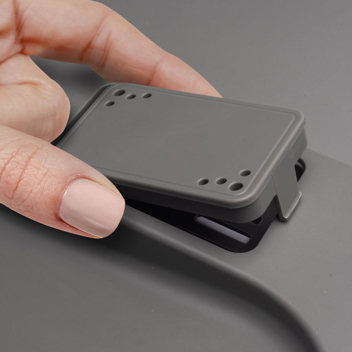 - Include 5 tappi, uno dei quali con alloggiamento per pastiglia antiodore e una pastiglia con aroma agrumato che neutralizza i cattivi odori, mantenendo l'interno del cassetto fresco per un periodo fino a 2 mesi. Per rifornirsi, è possibile acquistare il lotto da 5 pastiglie anti-odore (EAN 8432393343136).