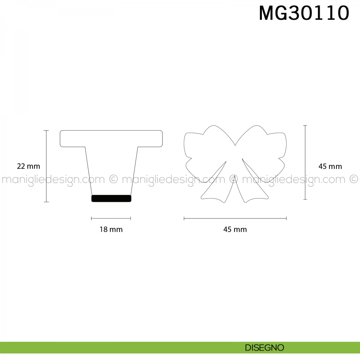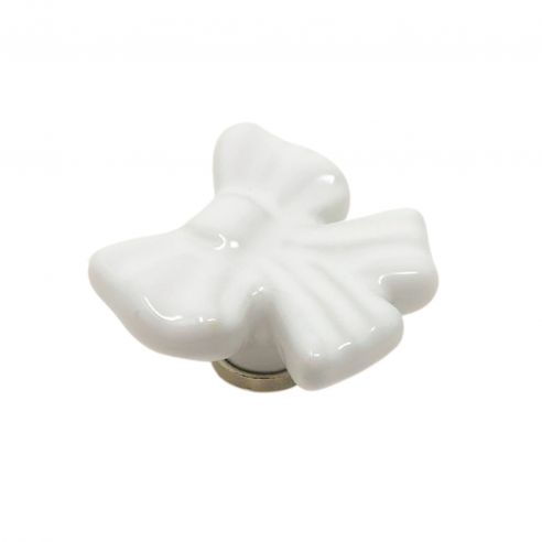 Pomolo fiocco in ceramica bianca per mobile Metal Style MG30110.