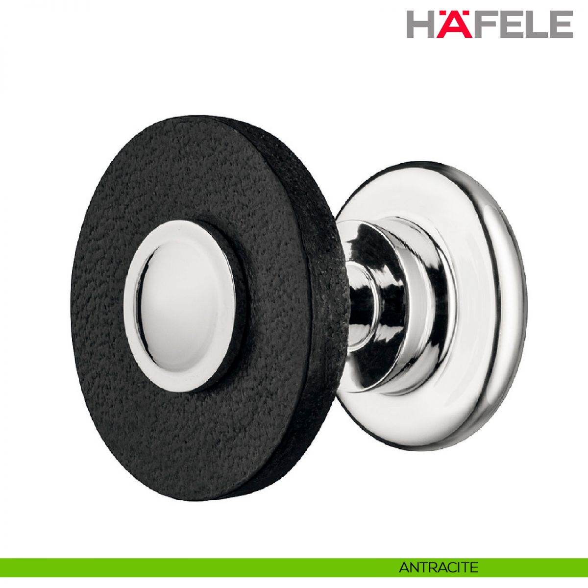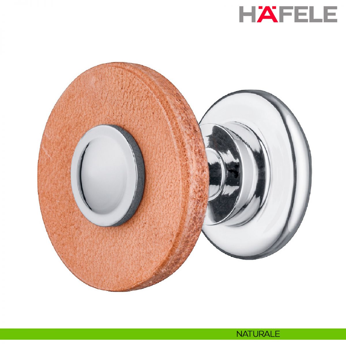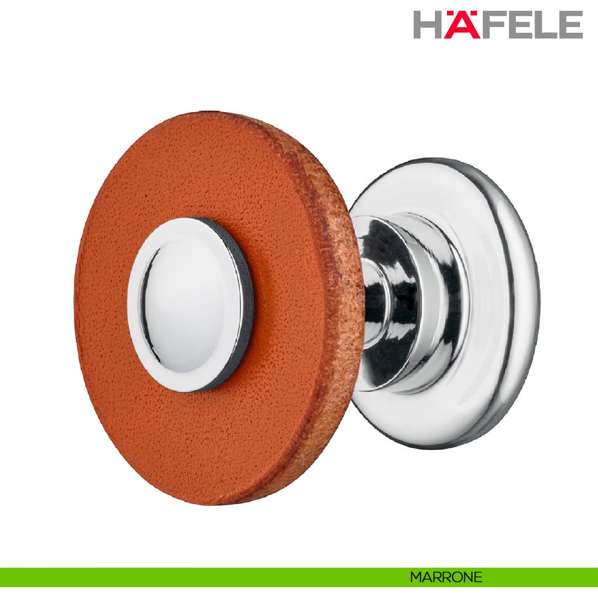 Maniglia per mobili in pelle e supporti in acciaio Hafele.