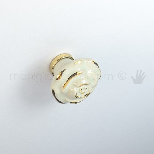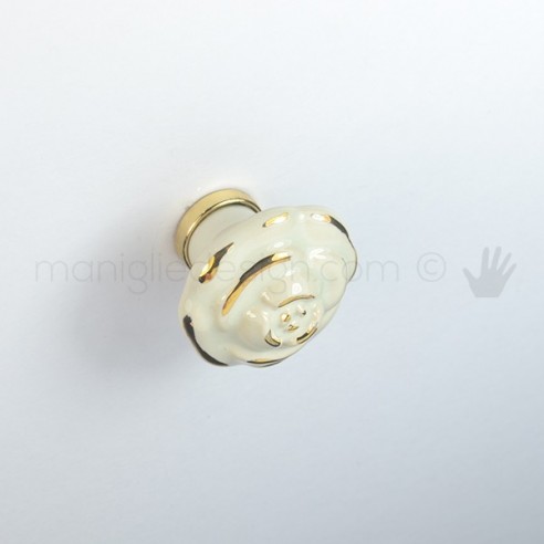Pomello per mobile ceramica avorio decorata oro Metal Style finitura oro.