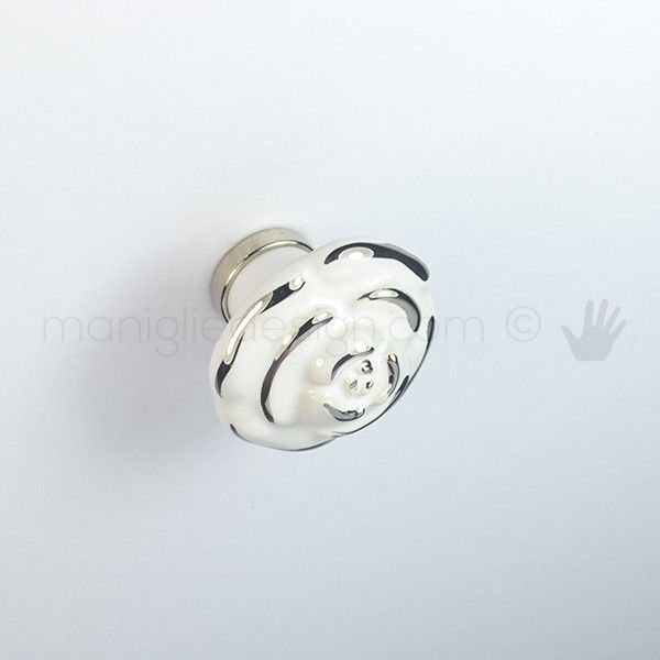 Pomello per mobile ceramica avorio decorata nickel lucido Metal Style finitura nickel lucido.