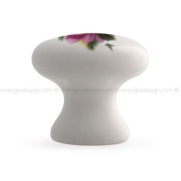 Pomolo in ceramica bianca con fiore colorato per mobile Mital art.060.