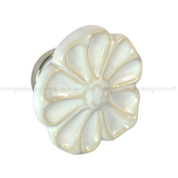 Pomolo in ceramica bianca per mobile Metal Style finitura nickel lucido art. MG30100.