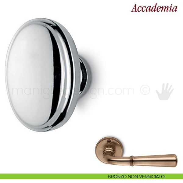 Pomello per porta Accademia girevole Antologhia con rosetta e bocchetta bassa con molla di ritorno.