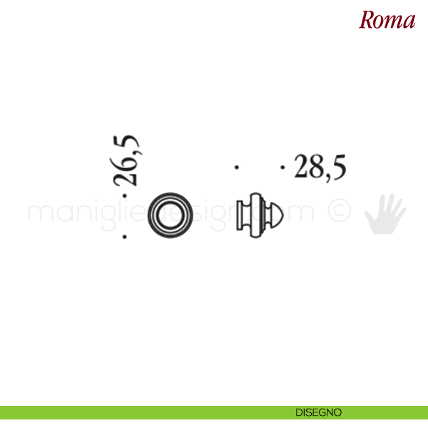Pomello per porta interna girevole Roma Antologhia con rosetta e bocchetta tonda senza molla di ritorno.