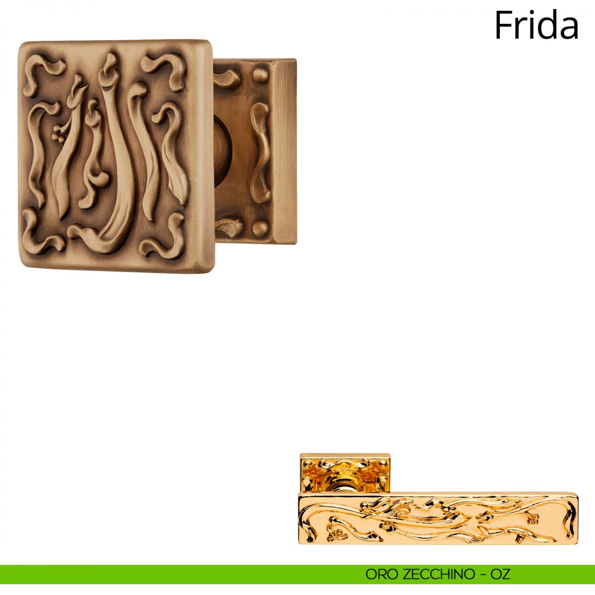 Esuberante e all’avanguardia, come l’artista da cui prende il nome, Frida Kahlo, la collezione di maniglie per porte Frida è un’autentica novità nel mondo della maniglieria tradizionale. Le sue forme, squadrate e rigorose, sono marcate da fregi sinuosi, simili a segni di pittura; è quasi come se un’abile pittrice si fosse divertita a decorarle con delicati tocchi di pennello. Per garantire la loro perfetta esecuzione, ed essere valorizzati dal particolare processo di lucidatura, lo stampo utilizzato per questa maniglia è caratterizzato da un’elevatissima precisione, la stessa che Linea Calì ripone in ogni collezione di alta gamma. La serie di maniglie vintage Frida è disponibile in tre finiture, fra le quali spicca il prezioso oro francese, con le sue delicate e splendenti nuance che vanno dall’oro al bordeaux. Con le sue forme importanti e artistiche, la collezione di maniglie Frida arreda ogni ambiente donandogli un’aria sofisticata ed elegante.