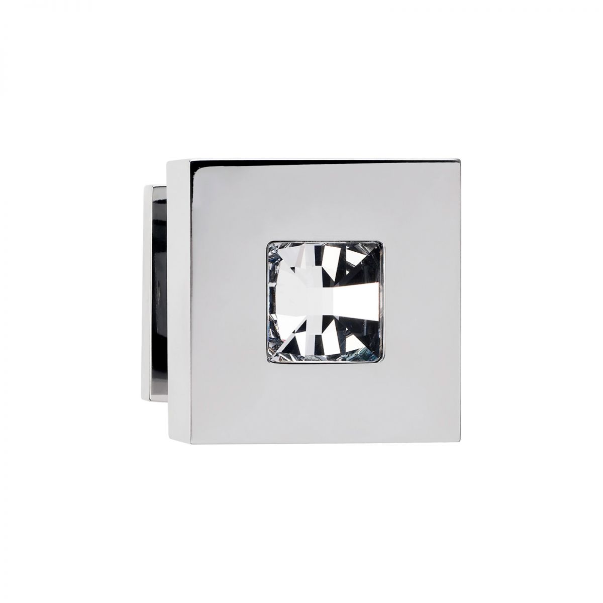 Pomolo con cristallo Swarovski per porta girevole Reflex Linea Calì su rosetta quadrata.