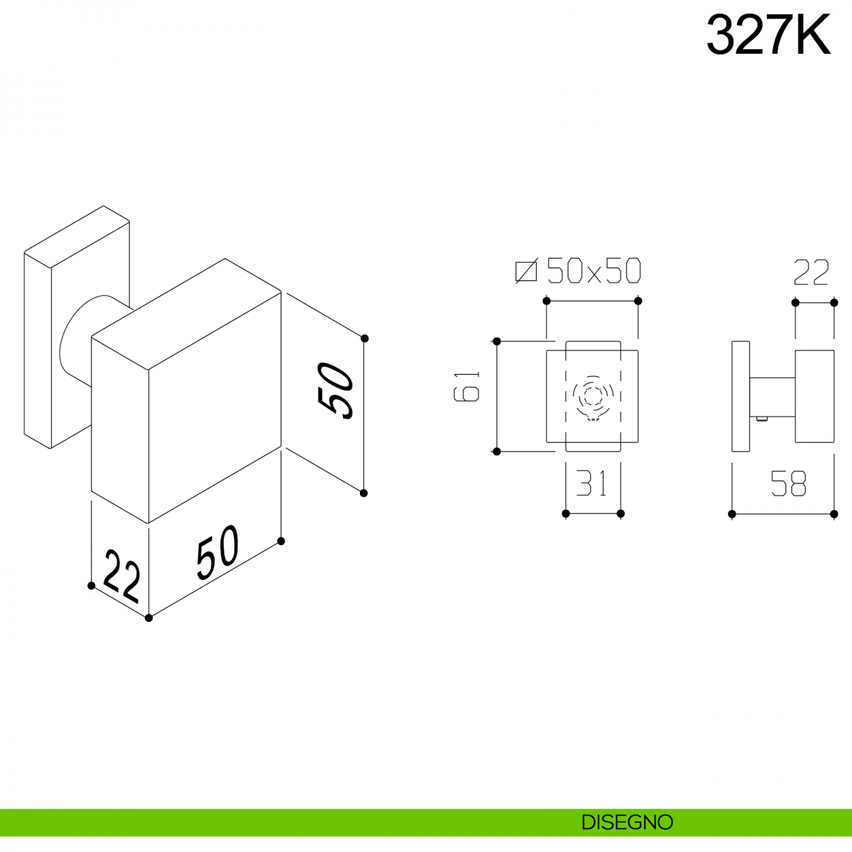 Pomolo fisso quadrato 50x50 mm in acciaio per porta 327K Fimet Inox con rosetta quadrata senza bocchetta.