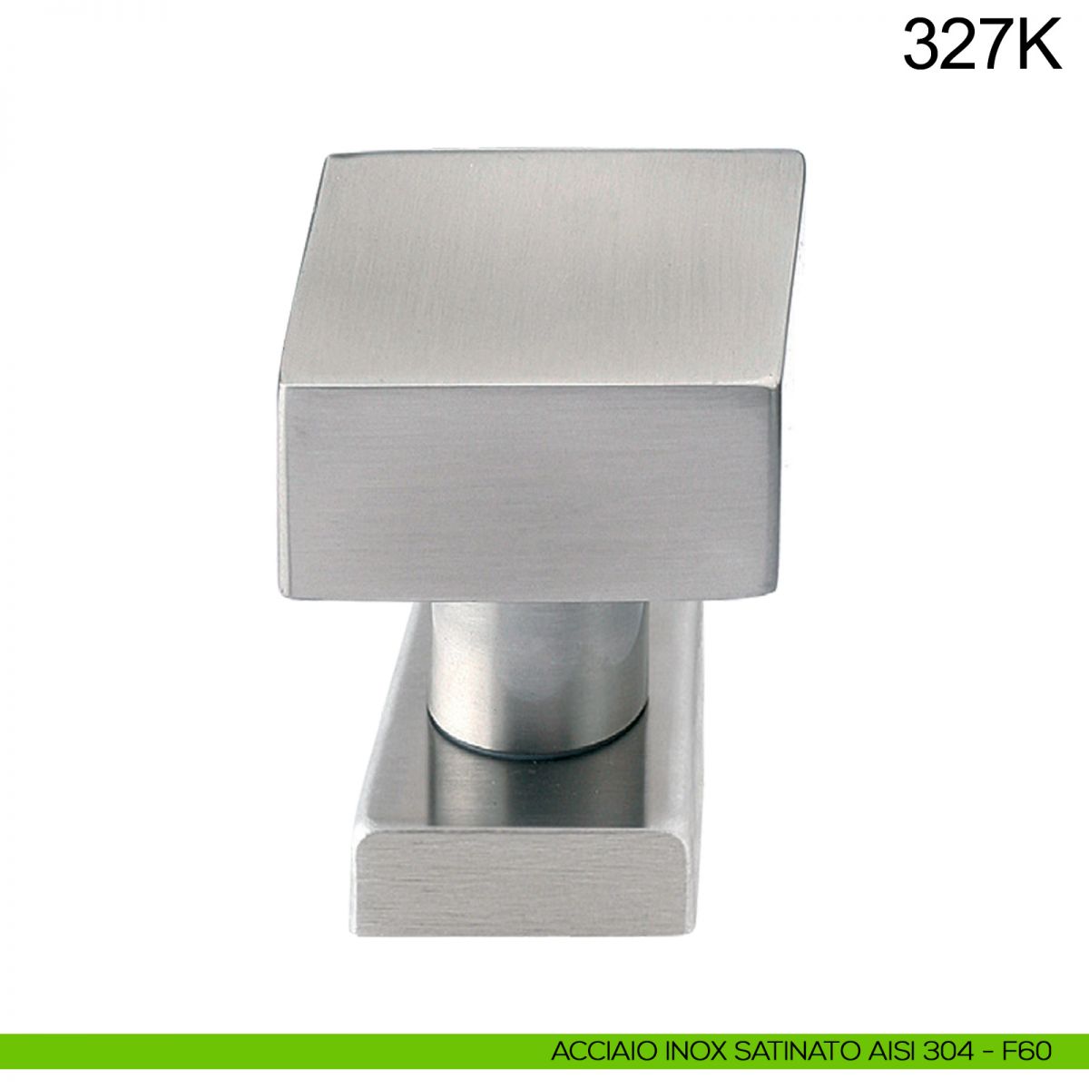 Pomolo fisso quadrato 50x50 mm in acciaio per porta 327K Fimet Inox con rosetta quadrata senza bocchetta.
