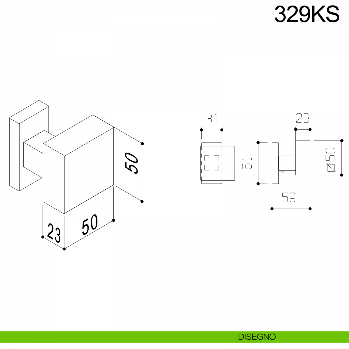 Pomolo zancato fisso 50x50 in acciaio per porta 329KS Fimet Inox con rosetta quadrata senza bocchetta.
