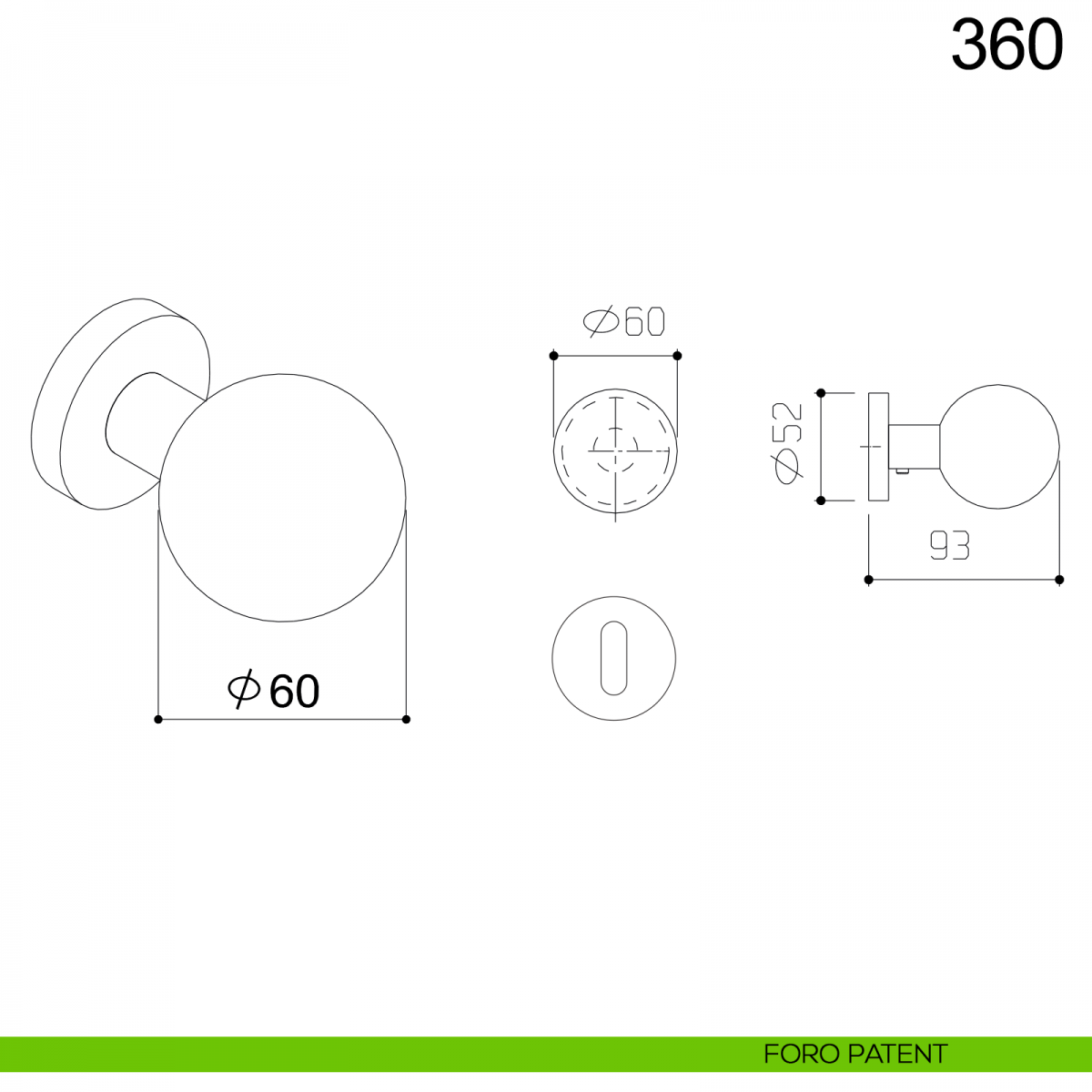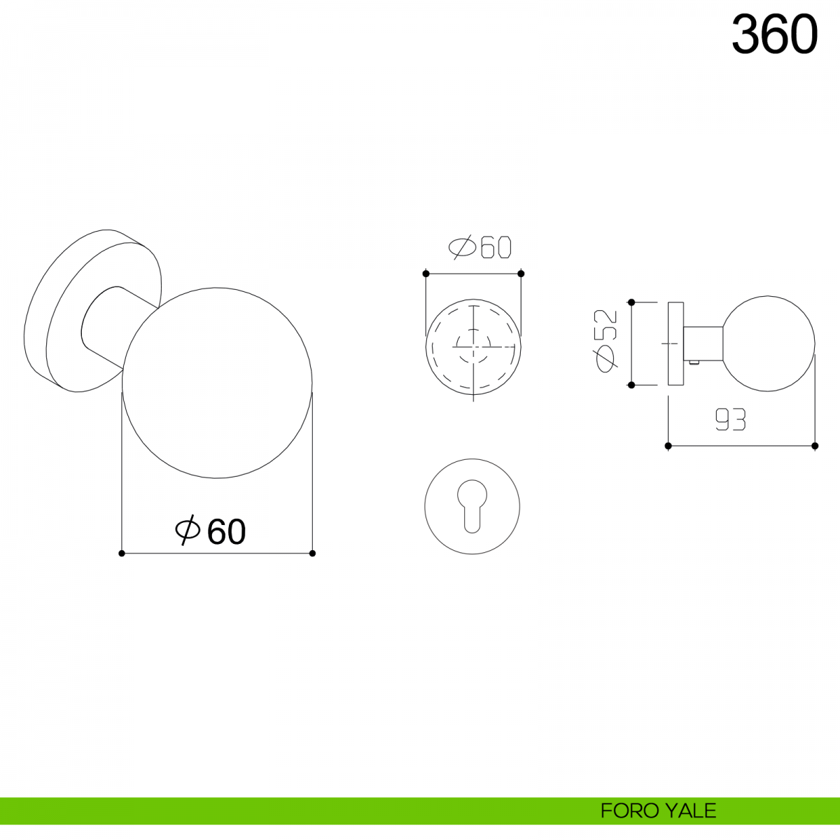 Pomolo girevole sfera diametro 60 mm in acciaio per porta 360 Fimet inox con rosetta e bocchetta tonda. Design by Fimet Inox Project.
