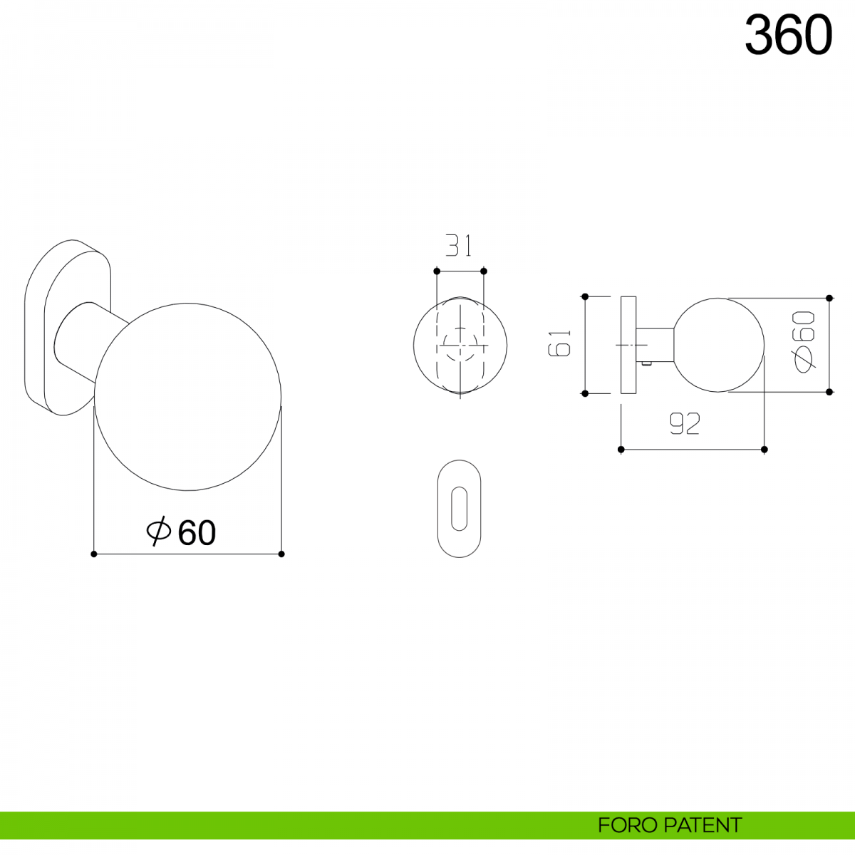 Pomolo sfera girevole a sfera diametro 60 mm in acciaio per porta 360 Fimet inox con rosetta e bocchetta ovale. Design by Fimet Inox Project.