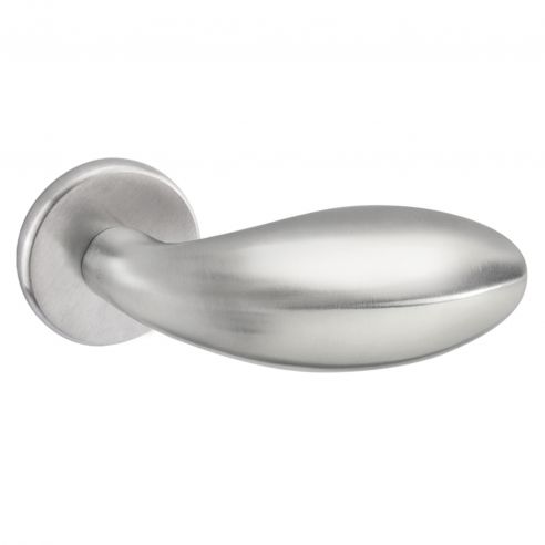 Pomolo girevole spostato in acciaio per porta 320 Fimet Inox con rosetta e bocchetta tonda. Design by Fimet Inox Project.