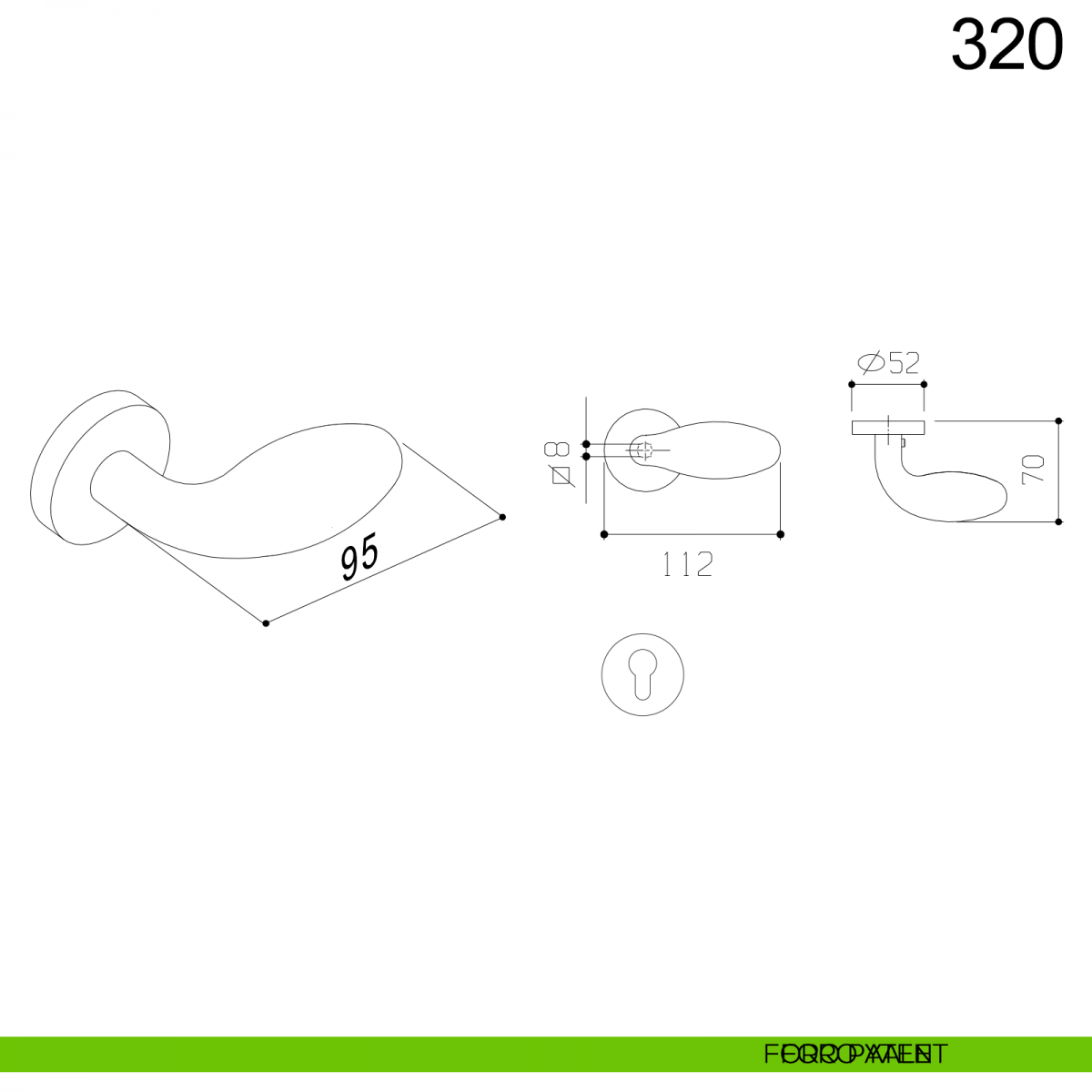 Pomolo spostato girevole in acciaio per porta 320 Fimet Inox con rosetta ovale