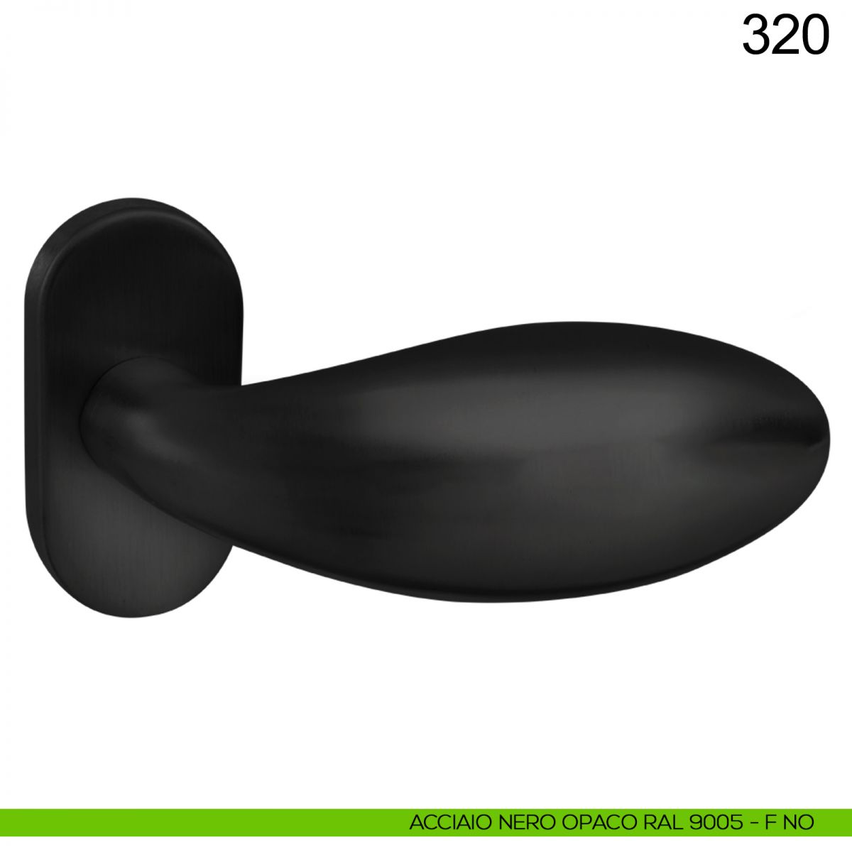 Pomolo spostato girevole in acciaio per porta 320 Fimet Inox con rosetta e bocchetta ovale. Design by Fimet Inox Project.
