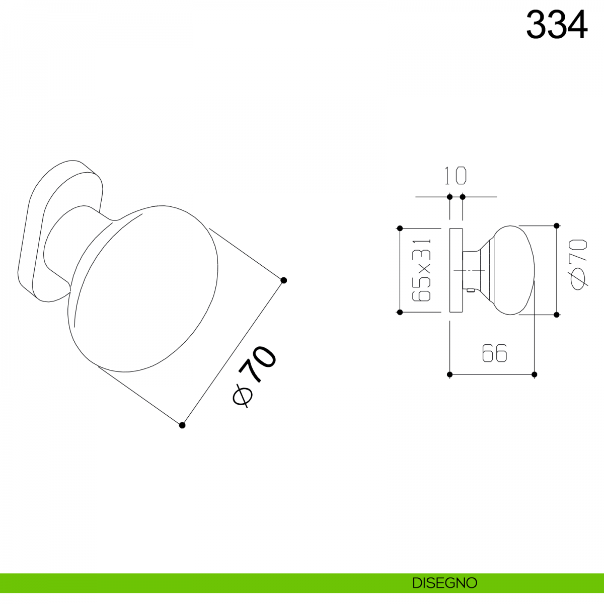 Pomolo fisso tondo diametro 70 mm in acciaio per porta 334 Fimet Inox con rosetta ovale senza bocchetta.