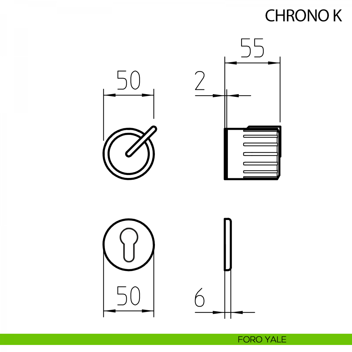 Pomolo per porta interna Chrono H Mandelli girevole con rosetta e bocchetta tonda.