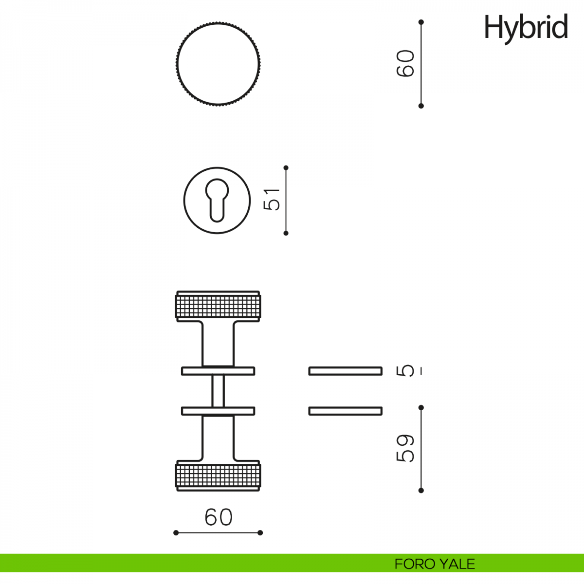 Pomello per porta interna Hybrid girevole Olivari con rosetta e bocchetta tonda ø51 mm bassa. Design by Steven Holl.