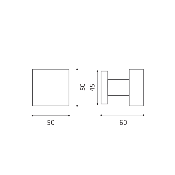 Pomello per porta Square fisso Comit su rosetta quadrata misura 50x50 mm senza bocchetta.