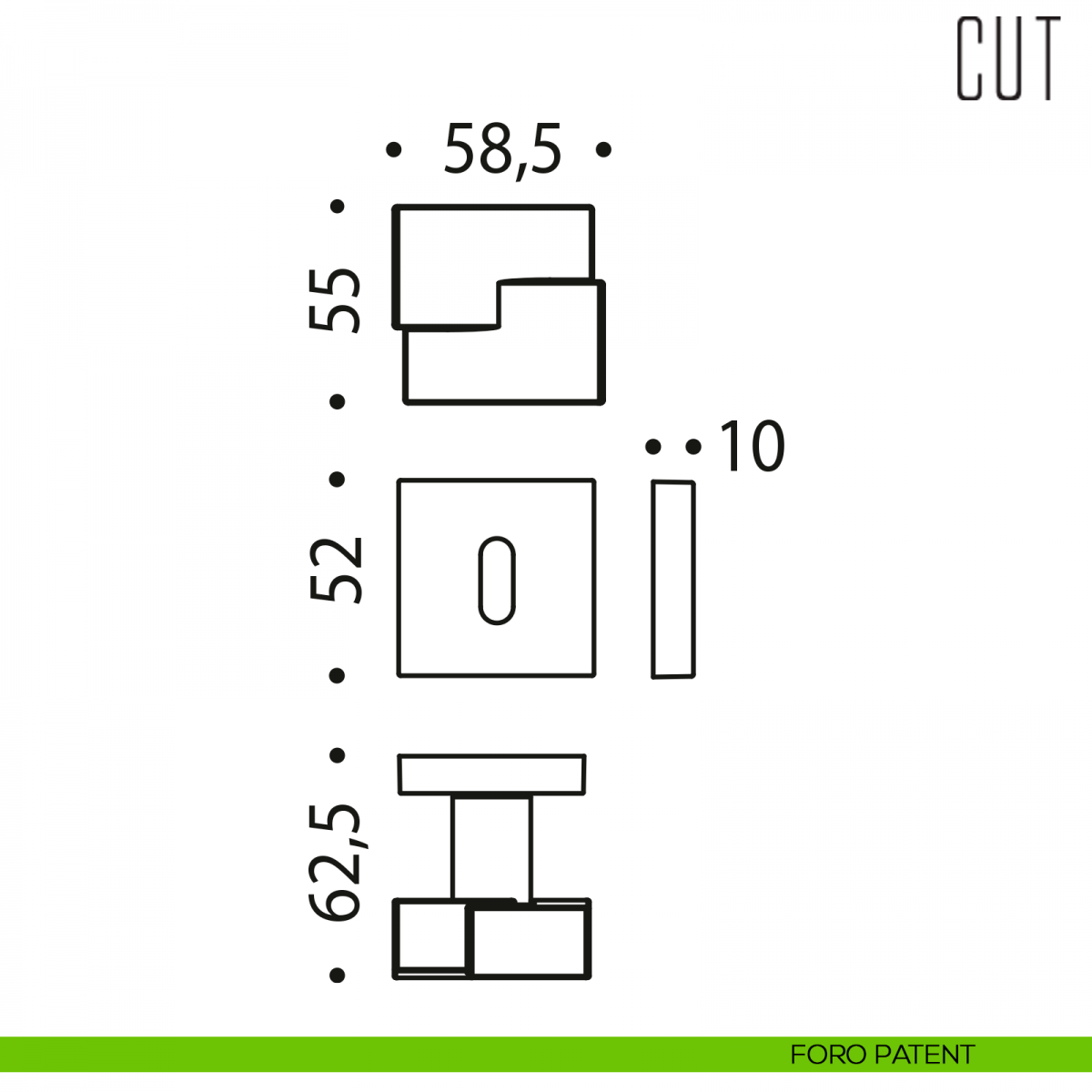 Pomello per porta Cut Colombo Design su rosetta quadrata 52x52 con bocchette foro chiave patent. Design by Messineo e Settimelli.