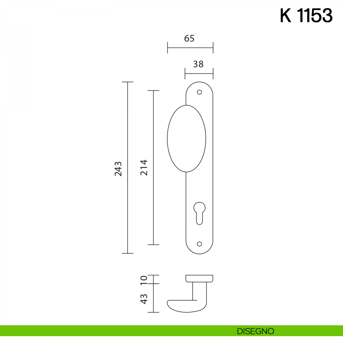 Pomolo per porta K 1153 fisso Valli collezione Lab con placca yale. Design by Valli Workshop.