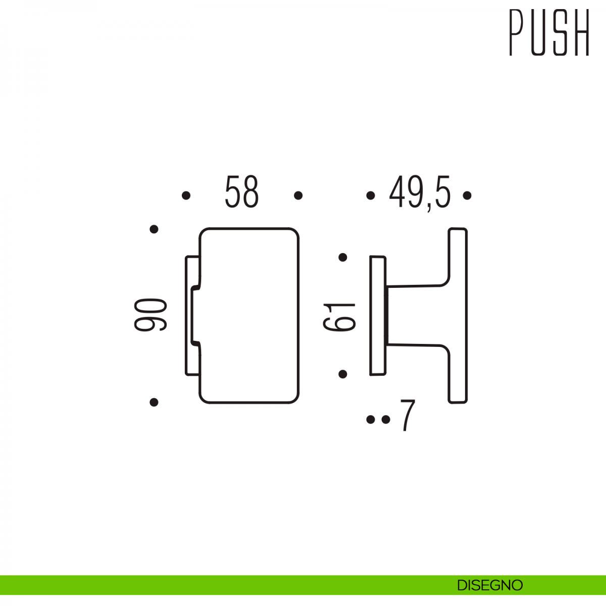 Pomolo per porta Push fisso Colombo Design su rosetta rettangolare senza bocchette. Design by Luca Colombo.