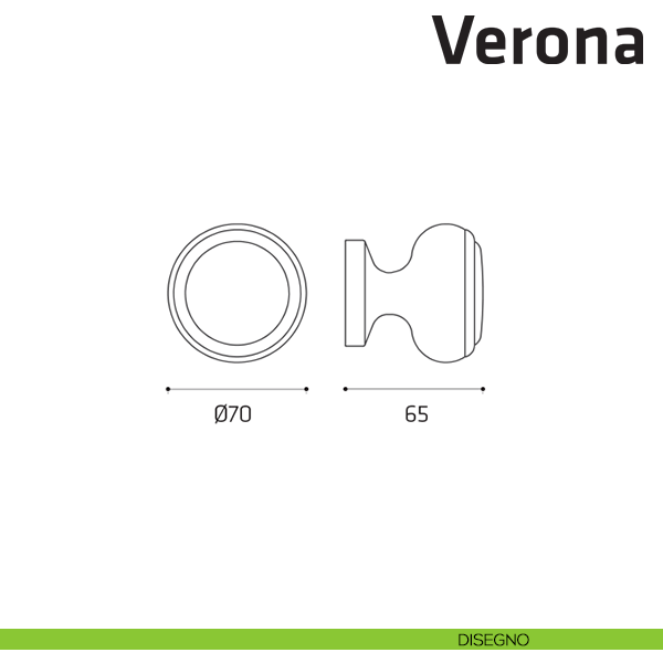 Pomolo fisso per porta Verona Comit su rosetta tonda diametro 70 mm senza bocchetta.