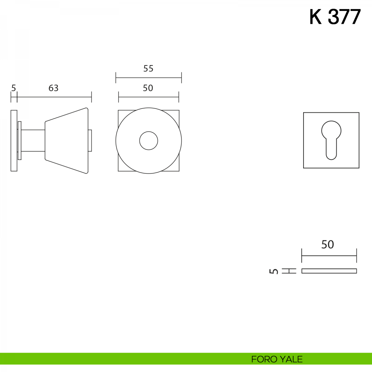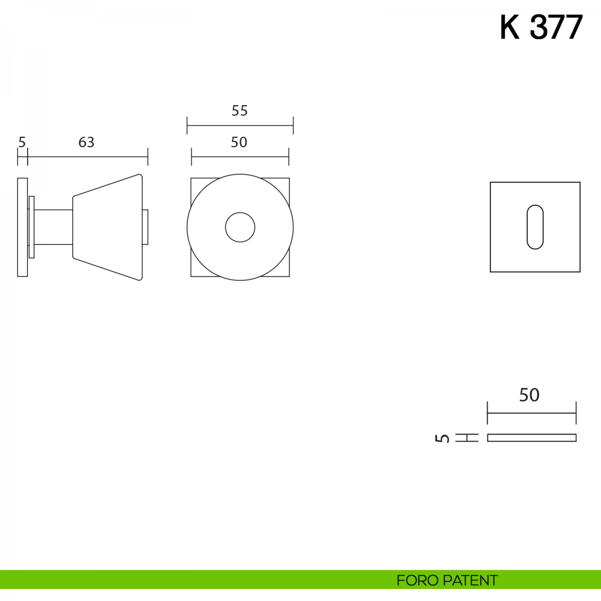Pomolo per porta K 377 B girevole Valli collezione Fusital su rosetta quadrata fine. Design by Steve Leung.