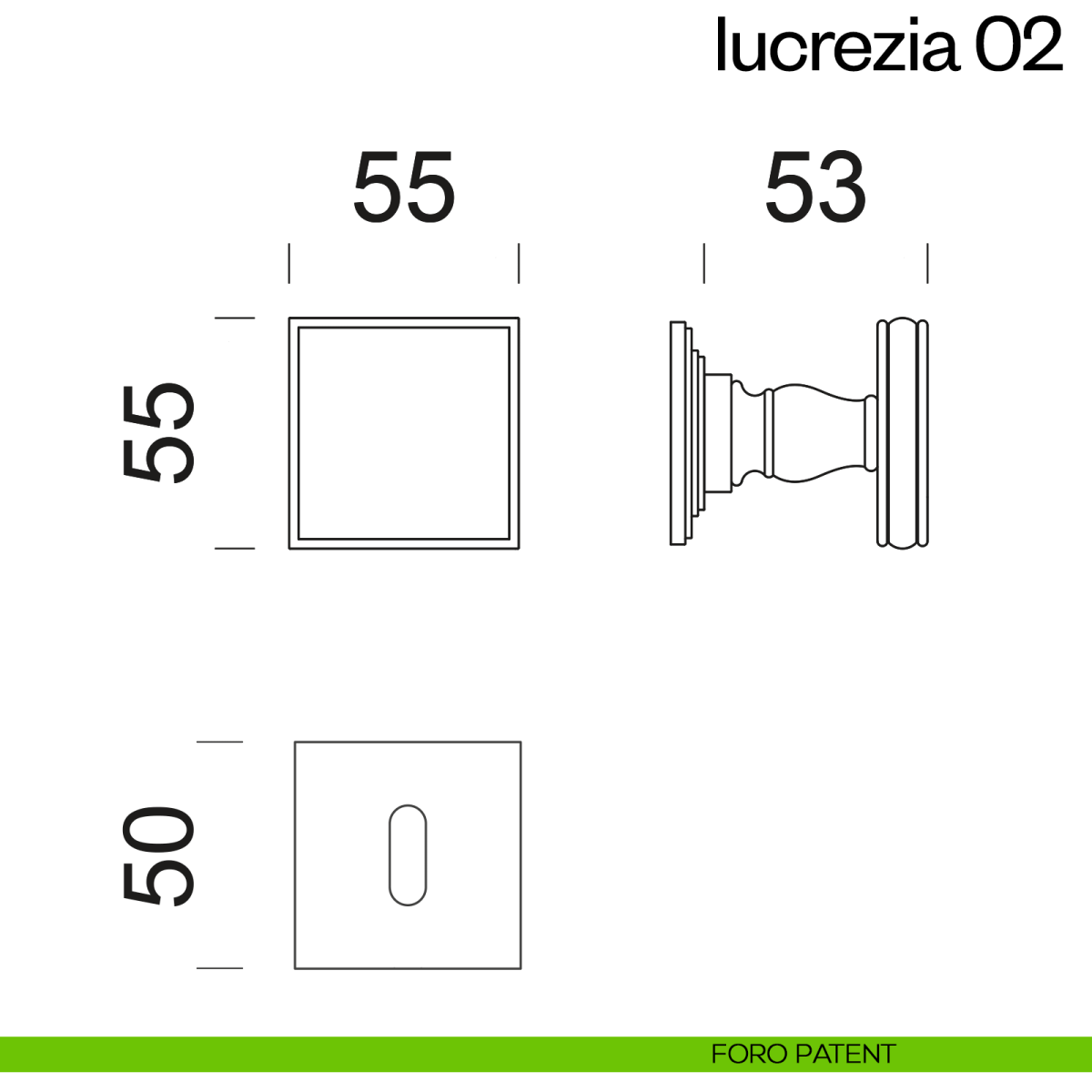 Pomello per porta interna Lucrezia 02 girevole dnd Handles con rosetta e bocchetta quadrata fine.