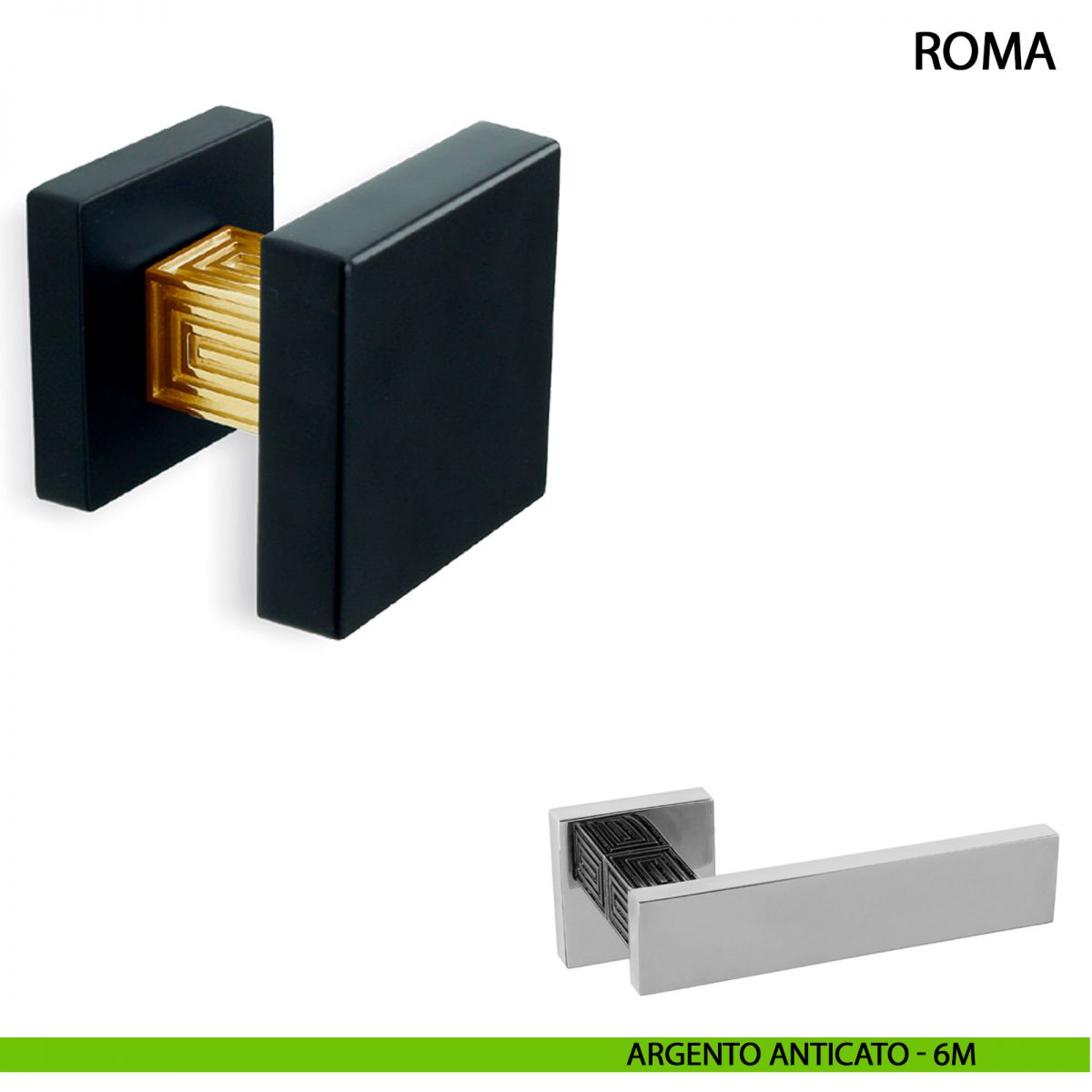Maniglia per porta Roma Comit con rosetta e bocchetta quadrata.
