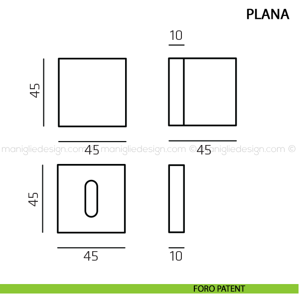Pomolo girevole per porta Plana Comit su rosetta quadrata misura 45x45 mm completo di bocchette.