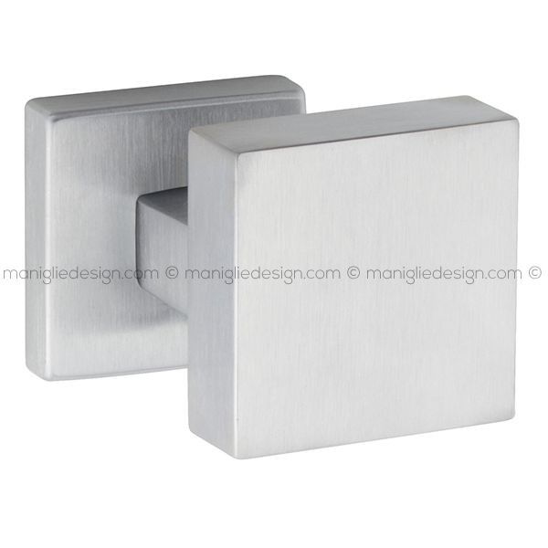 Pomolo per porta fisso 354 Quadro S Reguitti con rosetta quadrata senza bocchette. Design by Studio Reguitti.
