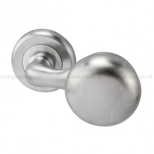 Pomolo per porta girevole 055 Apollo Reguitti con rosetta tonda ad avvitare completo di bocchette. Design by Studio Reguitti.