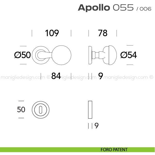 Pomolo per porta girevole 055 Apollo Reguitti con rosetta tonda ad avvitare