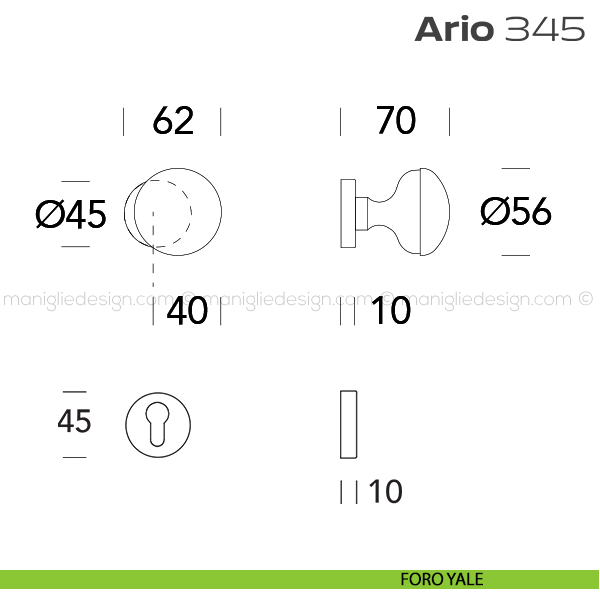 Ario Reguitti viene offerta anche nella variante pomolo fisso per porta. Scopri la gamma completa Reguitti 345 Ario per completare con stile il tuo arredamento.
