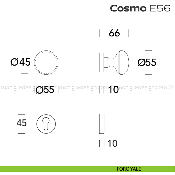 Pomolo per porta fisso E56 Cosma Reguitti diametro 55 mm con rosetta tonda a pressione senza bocchette.