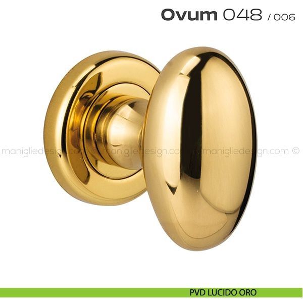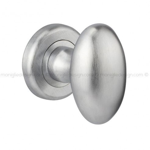 Pomolo ovale per porta girevole 048 Ovum Reguitti con rosetta tonda ad avvitare completo di bocchette. Design by Studio Reguitti.